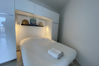 This comfortable studio is located on the 4th and top floor of a modern seafront residence with elevator – Château Leenhardt – offering direct beach access through the garden. Right in the heart of the village, in a quiet and sought-after area, everything is within walking distance: shops, markets (town center and Boucanet), restaurants, tapas bars, cinema…