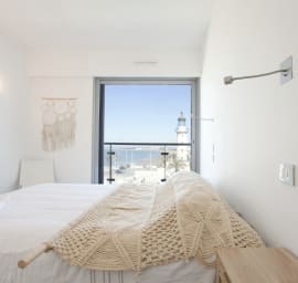 The "Le Phare" apartment is located in the heart of the seaside resort, with all the shops, restaurants, and the beach right at the foot of the residence, which overlooks the Quai Colbert in Le Grau du Roi, an iconic location marking the entrance to the Fishing Port. Facing the old lighthouse, and the sea, it boasts a high-end standard with an elevator, reversible air conditioning, and Wi-Fi.