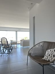 Large living area filled with natural light and sea views