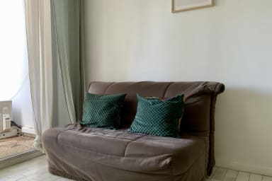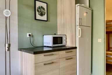The living area is spacious and pleasant, with a TV and air conditioning for your comfort. Enjoy the peacefulness of this bright and calming space, ideal for relaxing and unwinding.