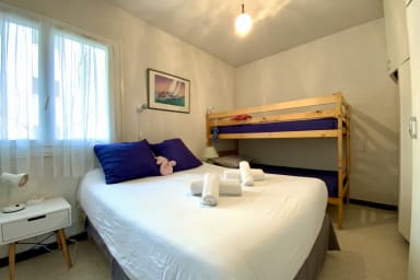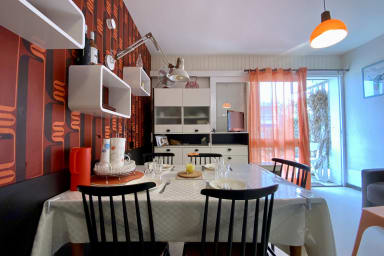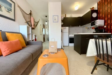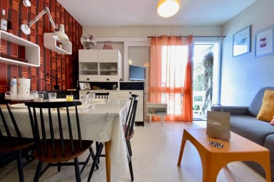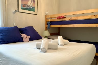 Pleasant apartment Les Yuccas in Le Grau du Roi, one-bedroom ground-floor apartment with parking, close to the beach and shops. Ideal for 4 people, with bedroom, bunk beds and charming retro style for a successful seaside holiday.