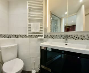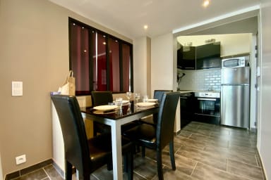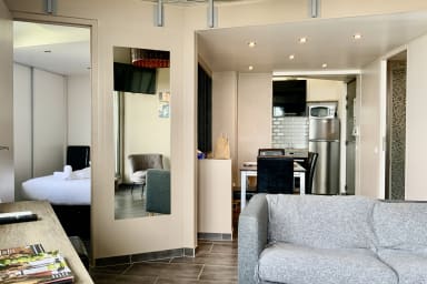 • Cuisine ouverte entièrement équipée : machine à café, bouilloire, grille-pain, four, micro-ondes, réfrigérateur, vaisselle complète