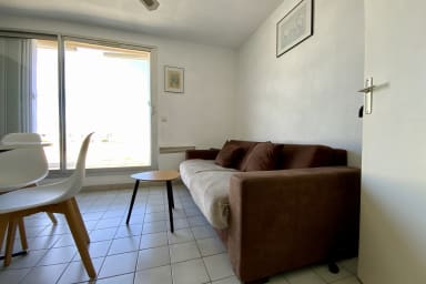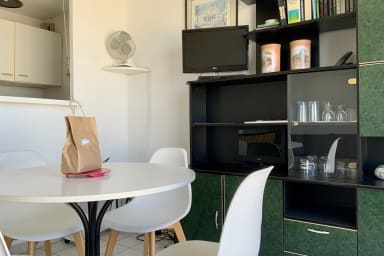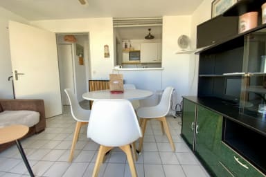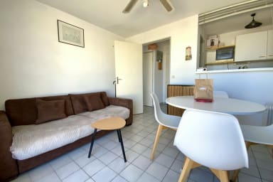 Cet appartement de type P2 bénéficie d'une agréable proximité avec la mer. Il comprend un coin cuisine semi-ouvert sur la pièce à vivre. Le couchage, un lit dépliant, se trouve dans le salon, avec un accès direct à la terrasse ensoleillée. Profitez de moments de détente en admirant la vue dégagée, dans un cadre calme et lumineux, au dernier étage de la résidence.