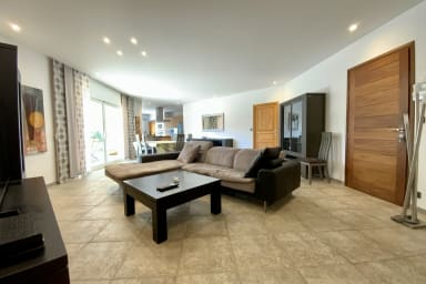 Le salon offre un espace cosy avec un grand canapé, une TV écran plat et une connexion internet haut débit pour rester connecté pendant vos vacances.